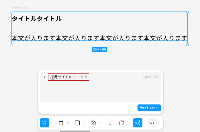 テキストの生成、リライト、翻訳、要約など、デザインに適したコピーが作成できます。